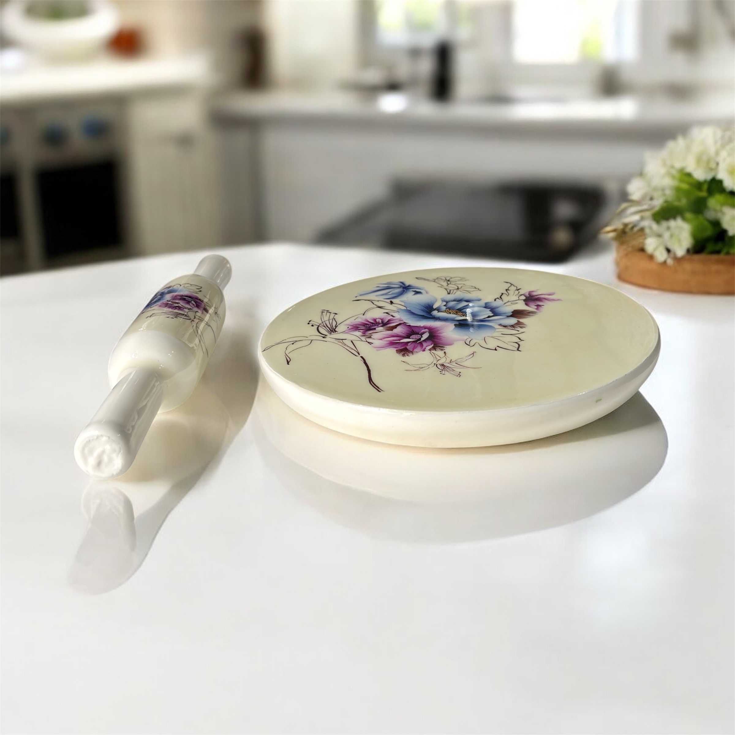 Designed for those who value both beauty and function, this set is perfect for rolling out rotis, puris, and parathas with ease, while also serving as a premium addition to your home décor. Its smooth marble surface ensures effortless rolling, hygiene, and durability, while the intricate floral design adds a touch of artistry that elevates everyday cooking.