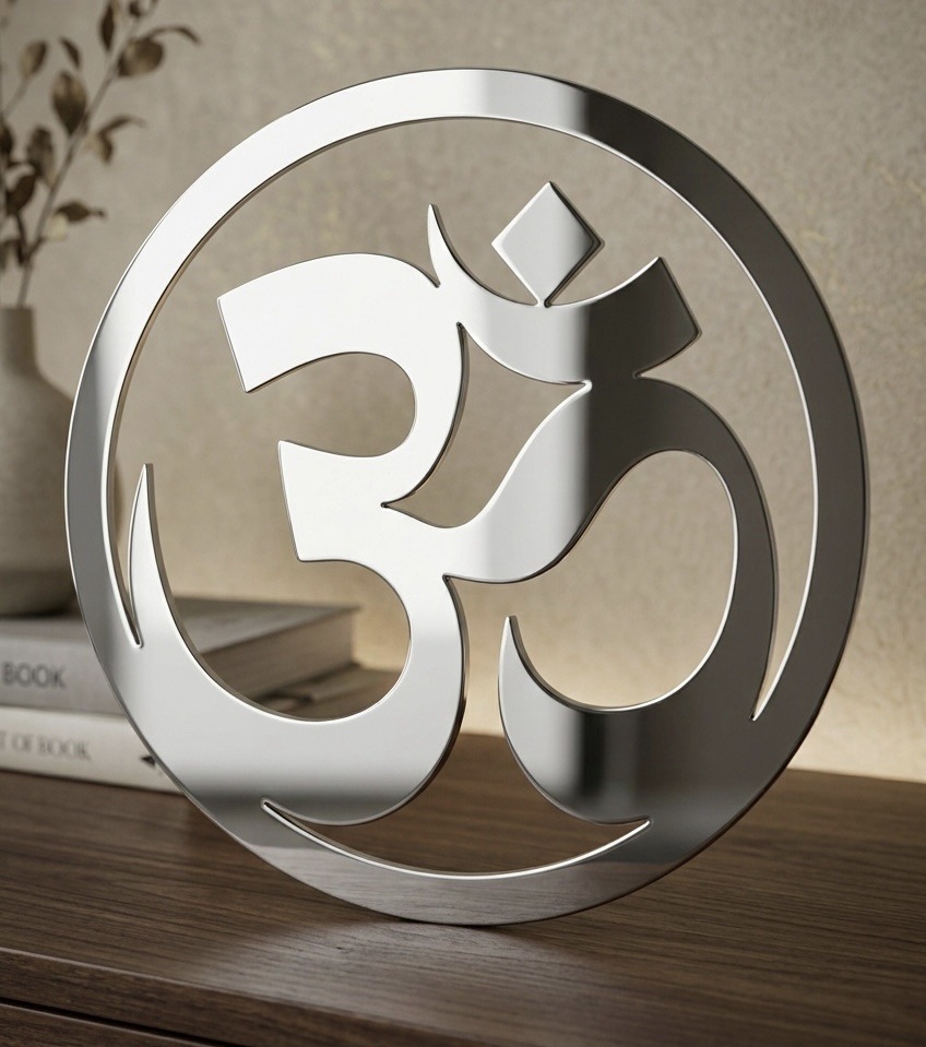 The Ruliarams MirrorShine Om Circle is a modern steel wall décor piece that blends sacred symbolism with contemporary elegance. Designed to bring peace, positivity, and refined style into your home, it features a sleek mirror-shine finish and comes in four round sizes (6, 8, 10, and 12 inches) — perfect for living spaces, meditation corners, and meaningful gifting.