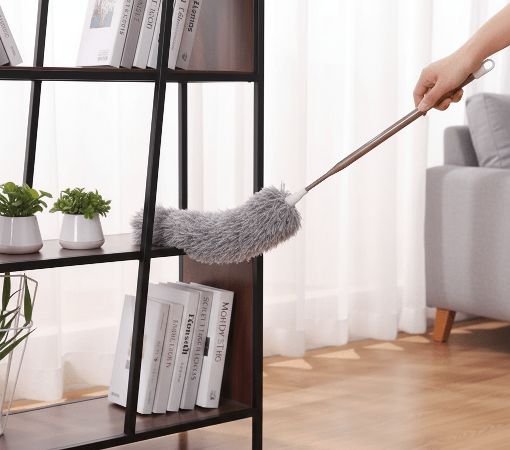 The soft microfiber fluffy duster head gently traps dust instead of spreading it in the air. It cleans effectively without scratching delicate surfaces like fan blades, light covers, or painted ceilings. Lightweight and easy to handle, this tool reduces hand strain and makes cleaning faster, smoother, and more comfortable—perfect for apartment living and minimal home cleaning setups.